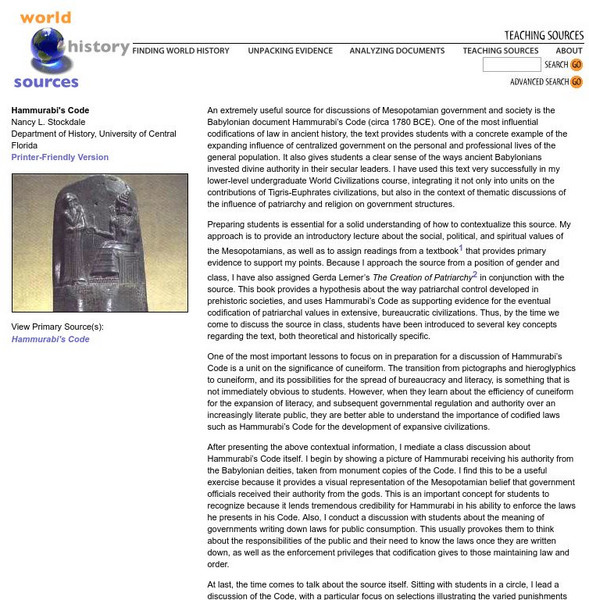 Nancy L. Stockdale. who teaches at the University of Central Florida, describes how she mediates a discussion of Hammurabi's Code with her students.