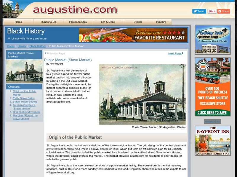 The first public market in st. Augustine, Florida dates back to the era of slavery. Learn about the slave trade and the role it played in the city's early history as well as the modern civil rights movement.