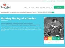 Learners explore the purpose of a garden. In this Earth Day lesson, students read the story The Gardener and complete a Venn diagram comparing life in a city to farm life. Learners discuss Earth Day and plant flowers in a garden .