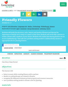 Students listen to music while creating flowers with a partner. They decide on a philanthropic act related to flowers. They recognize the difference between private property and common resources. They use a problem-solving model to...