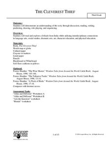 Third graders read the story The Cleverest Thief and complete language art activities to go along with it. Students complete activities including discussion, reading, writing, predicting, drawing, role playing, and sequencing.