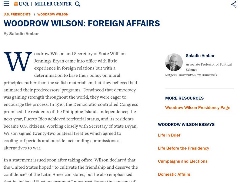 Miller Center at Uva: u.s. Presidents: Woodrow Wilson: Foreign Affairs