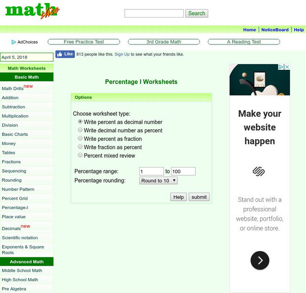 This QuickMath activity changes percentages to decimals or fraction and vice versa. It also calculates a certain percent of a number or vice versa.