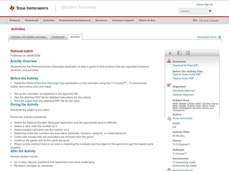 Students use the Rational Number Rampage application to play a game to find numbers that are equivalent fractions, decimals, and percents.