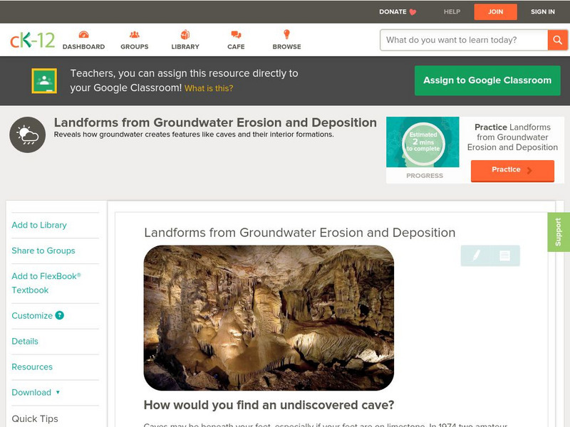 Ck 12: Landforms From Groundwater Erosion and Deposition