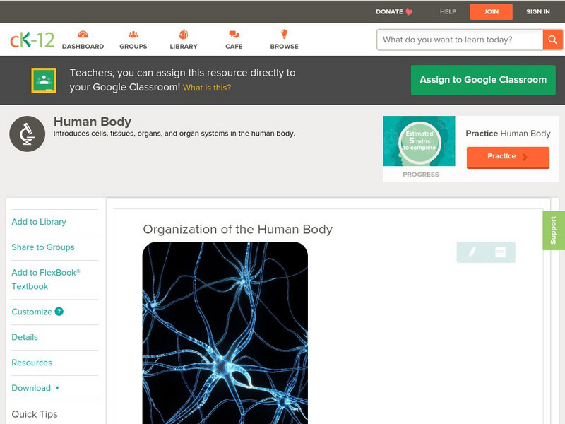 For this human tissue worksheet, students read about the 4 different tissue types in the body. Students read 4 pages about the types.