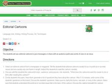Do your classes love reading and drawing cartoons? Middle schoolers read an editorial cartoon from a newspaper. They discuss the cartoonist's topic, audience, and purpose. Next, they brainstorm questions they have about the cartoon and...