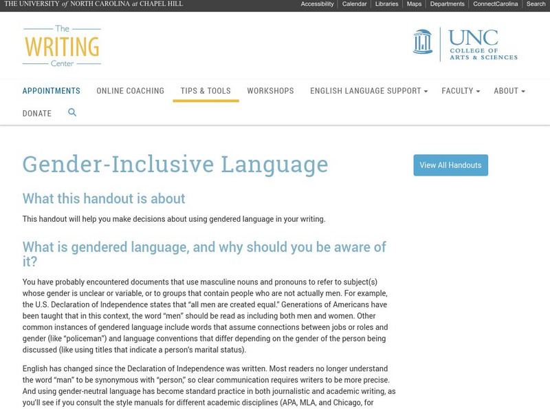 University of North Carolina Writing Center Handouts: Gender Inclusive Language