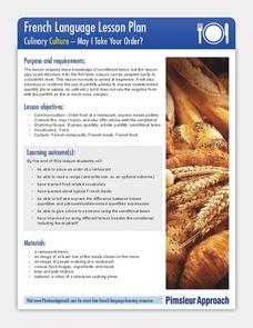 Welcome to the café! Introduce beginning French speakers to food-related vocabulary and using the conditional tense to place an order. This plan gets your kids up and moving. They look at French menus, identify quantity expressions (like...
