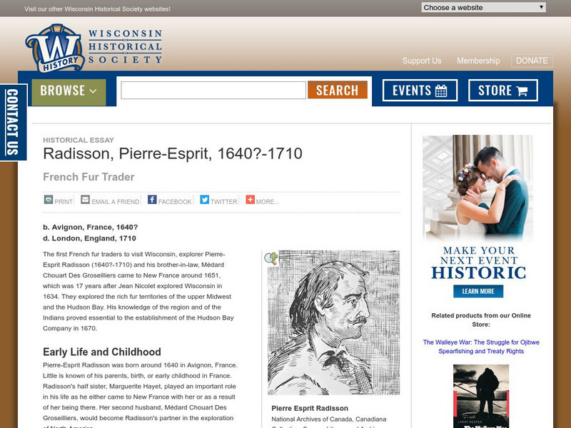 Wisconsin Historical Society: Pierre Esprit Radisson, 1640? 1710