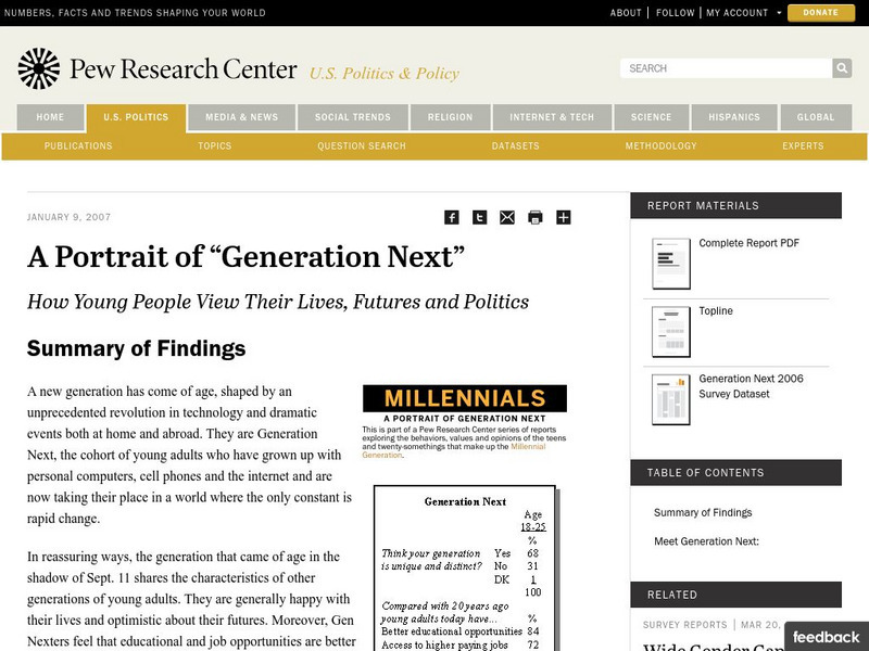 A report on how "Generation Next", those of age 18-25 "view their lives, futures and politics." Find out who this new generation is and what defines it as a group.