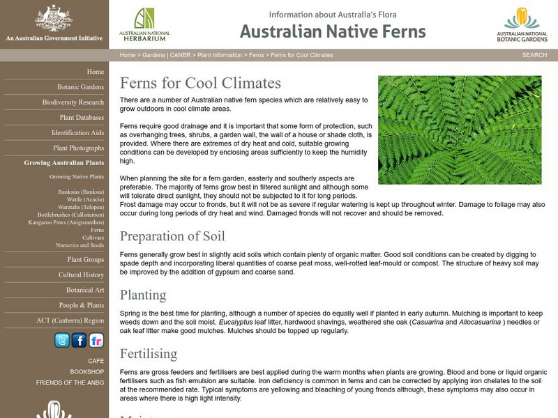 Australian National Botanic Gardens' growing instructions for the listed ferns.