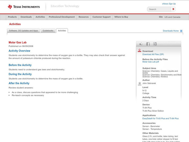 Serc: Molar Volume of a Gas Determined via a Reaction
