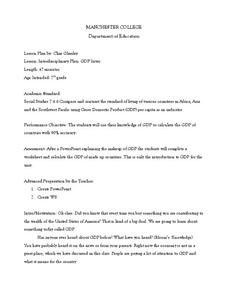 Seventh graders discuss the GDP and Middle Eastern nations. In this standard of living lesson plan, 7th graders complete a worksheet during a lecture on the GDP. Students identify the impact of the GDP on a country and reasons for...