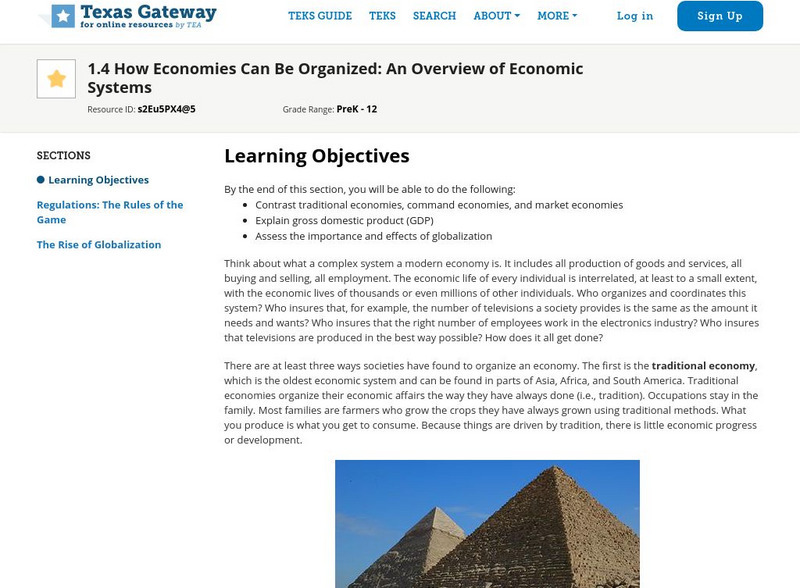 Texas Gateway: How Economies Can Be Organized: An Overview of Economic Systems