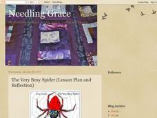Youngsters explore visual arts by participating in a geometry identification activity. They read the book The Very Busy Spider and identify the techniques spiders use to create webs. Have you ever noticed that their webs are geometric...