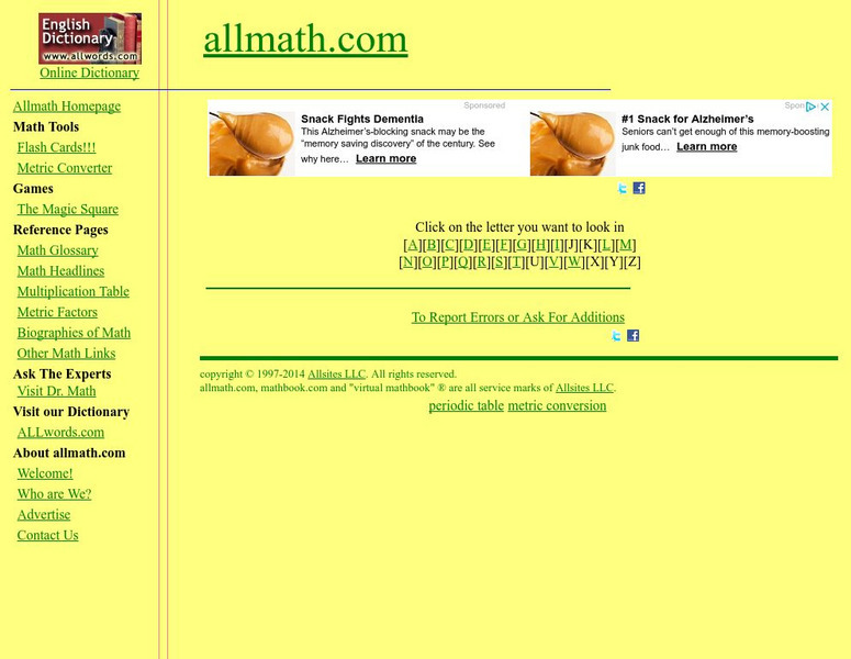 Are your students having difficulty understanding math terminology? Try this A-Z glossary on math related terms. It's quick, easy to read, and very complete.