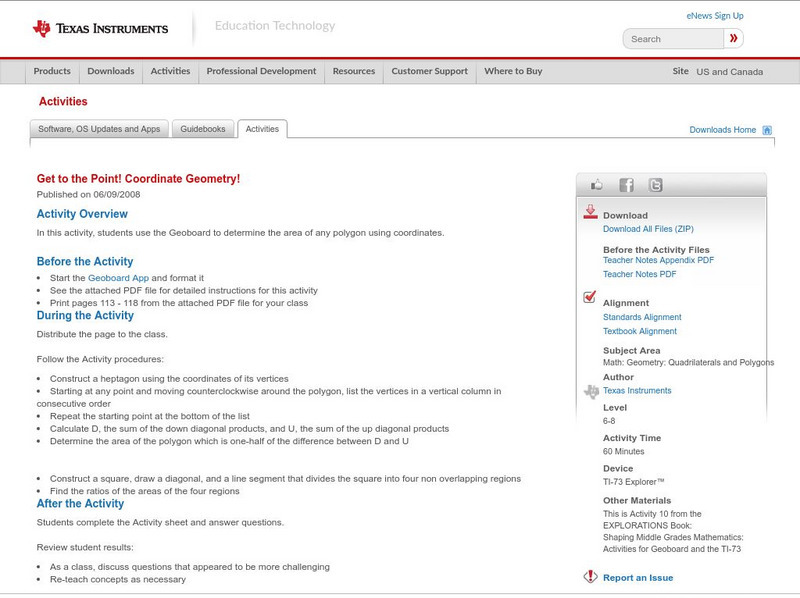 Texas Instruments: Get to the Point! Coordinate Geometry!
