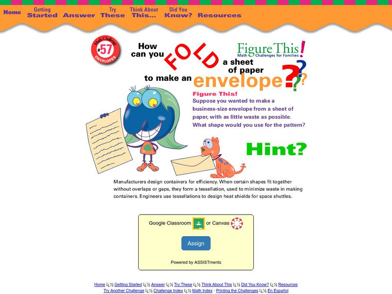 Explore tessellations with real world applications in this activity from the NCTM Math Challenges for Families series. Figure out what shape you would use to create a legal envelope from a single sheet of paper. Then discover how...