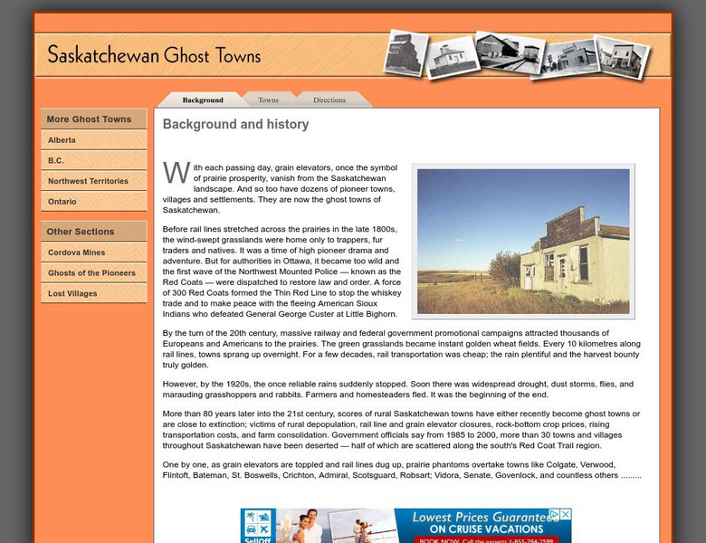 Explore Ontario's ghost towns through this interactive website! Learn the stories of the many ghost towns in the province through both narrative and photos. Maps are also provided.