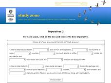 In this online interactive grammar skills worksheet, learners answer 13 fill in the blank questions regarding imperatives. Students may submit their answers to be scored.