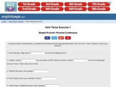 In this online interactive grammar skills worksheet, learners answer 10 fill in the blank questions regarding verb tenses. Students may submit their answers to be scored.