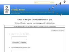Review important grammar skills using this resource. In this grammar worksheet, learners complete an online quiz with ten questions about gerunds and infinitives. This would be a great center activity.