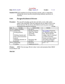 Students solve problems using the composition of functions. For this algebra lesson, students analyze the graph of a quadratic equation for its vertex and intercepts. they find the inverse of the function using addition, subtraction,...