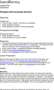 Young scholars find the vertex, directrix, and focus of a parabola. They graph parabolic functions and solve application problems involving parabalas.