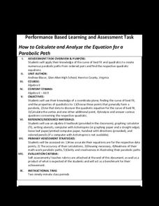 Working in groups, pupils plot three points on the coordinate plane representing three different parabolic paths. Using a calculator, they determine the quadratic regression equation for their models. Each team then figures out the...