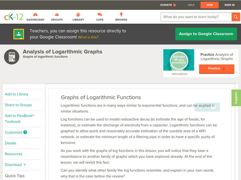 Ck 12: Algebra Ii: Analysis: Graphs of Logarithmic Functions