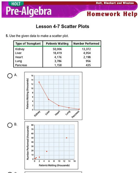 Holt, Rinehart and Winston: Homework Help Independent Practice: Scatter Plots