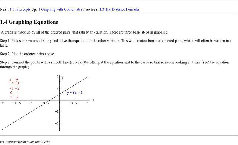 Northeast Parallel Architecture Center, Syracuse University provides a brief lesson on graphing equations by plotting ordered pairs.