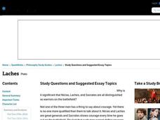 In this online interactive history instructional activity, learners respond to 10 short answer and essay questions about Plato's Laches. Students may check some of their answers on the interactive instructional...