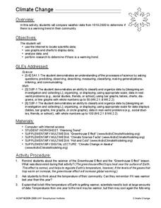 Students compare weather data and draw conclusions. In this climate change lesson plan, students determine whether data collected over a period of ninety years shows a warming trend.