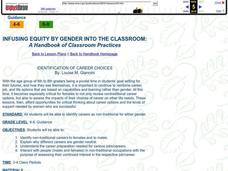 Student examine gender in career choices. In this career instructional activity, students are given a list of careers and asked to put them in groups of male. female, and neutral. Students also look through magazines and cut out pictures...