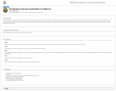 W. W. Jacobs' horror story, "The Monkey's Paw," is used to introduce foreshadowing. As they advance through the story, young readers make predictions about what might happen next and how the story might end. Pairs work through the...