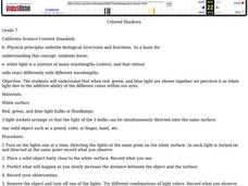 Pupils explore light and color, including how colors are mixed to produce new colors, how light is filtered, and how light is reflected off of surfaces. They read materials provided, complete worksheets, and complete hands-on activities.