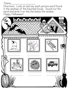 For this short vowels worksheet, 1st graders look at and say each picture word found in the windows of the haunted house. Students sound out the words and write them on the lines.