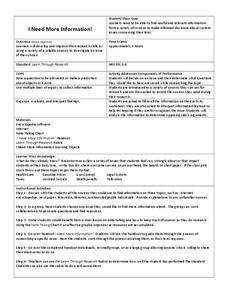 Students research a topic of their choice. In this researching lesson, students gather information and take notes about a topic they feel strongly about.