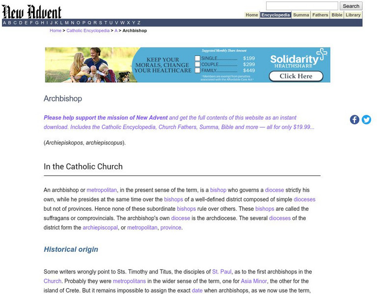This article looks at the history and role of the Archbishop in the hierarchical structure of the Roman Catholic Church. Please note that ?The Catholic Encyclopedia? is a historic reference source and should be viewed in the context of...