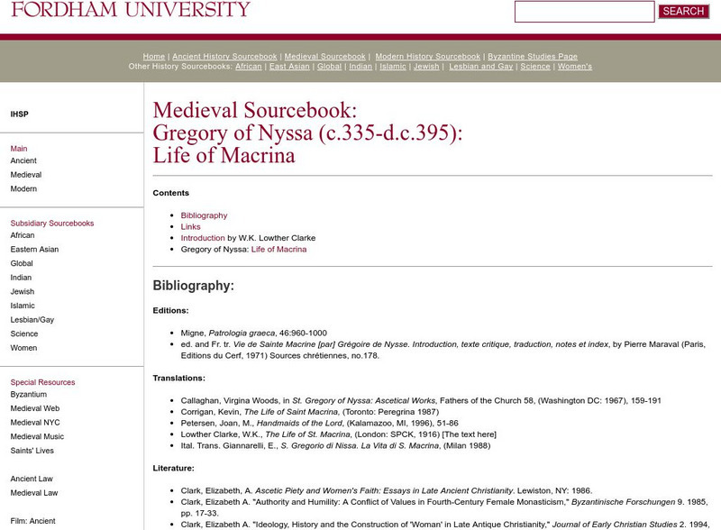 Fordham University: Medieval Sourcebook: Gregory of Nyssa: Life of Macrina
