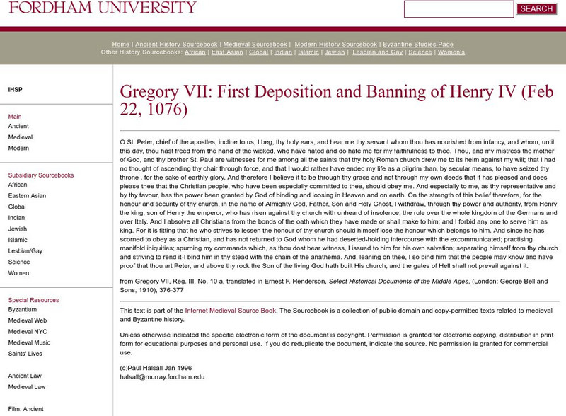 Fordham University: Medieval Sourcebook: First Banning of Henry Iv