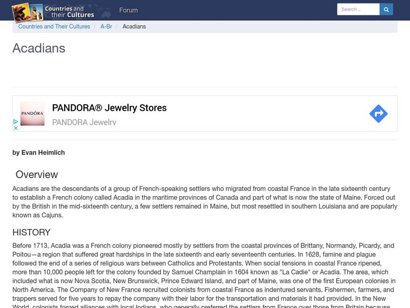 Provides an overview of the traditional culture and lifestyle of the Acadians. (Note: Content is not the most current.)