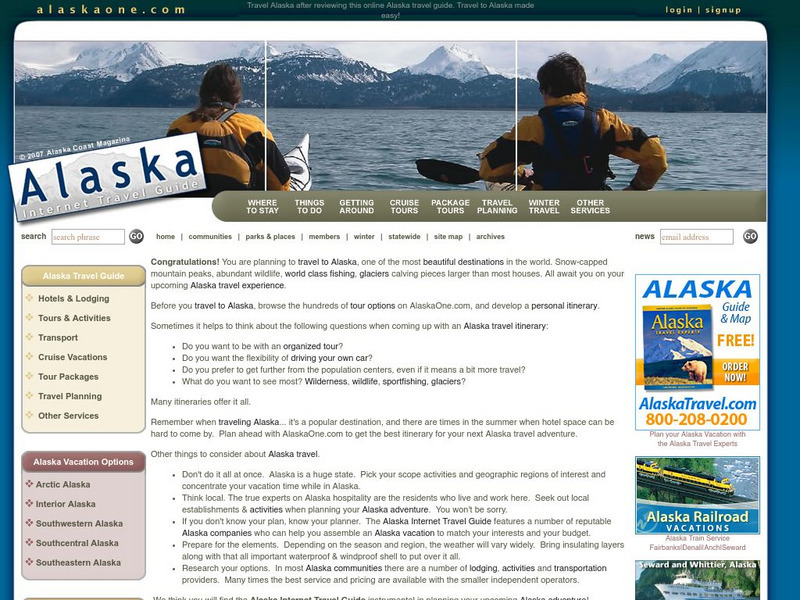 This site gives great information on the different regions of Alaska. Provides many pictures of wildlife and attractions.