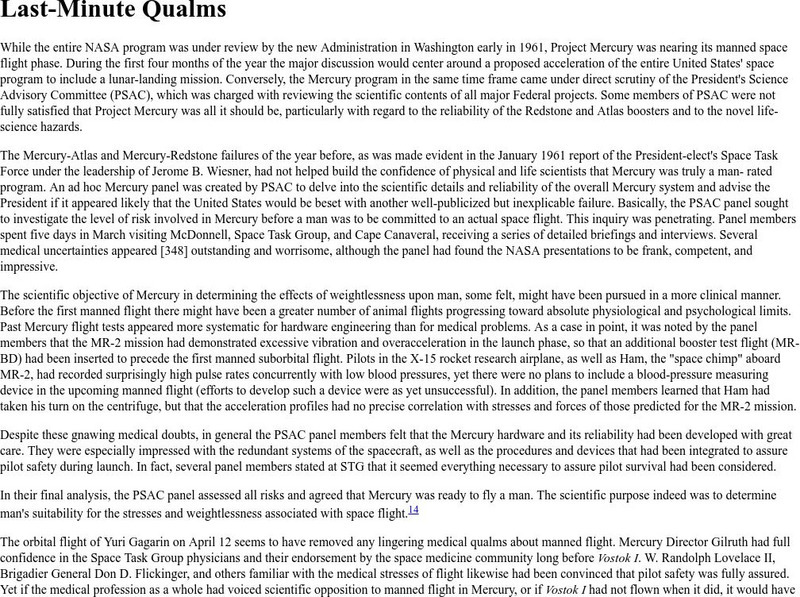 This site from NASA provides a detailed description of the flight of the first American to travel into space aboard the Freedom 7 Mercury spacecraft in 1961.