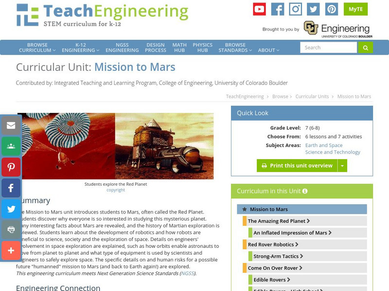 The Mission to Mars curricular unit introduces students to Mars-the Red Planet. Students discover why scientists are so interested in studying this mysterious planet. Many interesting facts about Mars are revealed, and the history of...