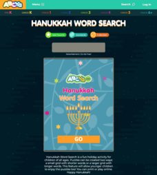 Hanukah is the theme of an online word search that challenges players to locate several holiday-related words. Scholars choose a grid size then highlight words as festive music plays.