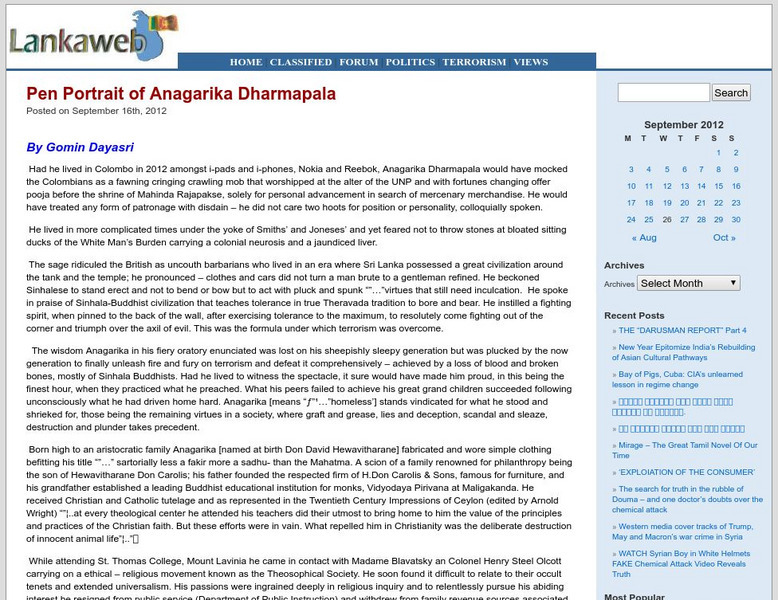 Lanka Web: Anagarika Dharmapala