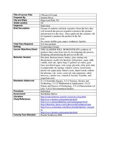 Tenth graders investigate the process of how specific products are made from trees. For this chemistry activity, groups of students must choose among ice cream, bubble gum, paper, toothpaste and lipstick. They research, design and...